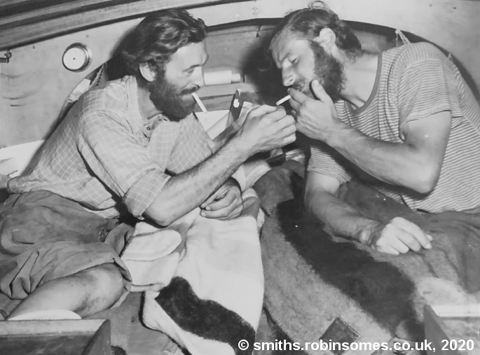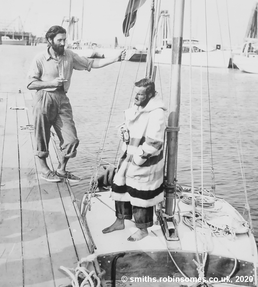 When he, and Nova Espero, finally shipped back to England in November, he and Stan Smith started renovating the boat, adding a proper cabin, and a mizzen mast. In May 1951, he and Stan set off from the Festival of Britain site, to cross the Atlantic again. Forced to divert via the Azores for repairs, they crossed to Nova Scotia, eventually reaching New York on September 11th, after a journey of 120 days. This story is told in Smith and Violet’s book “The Wind Calls The Tune”.